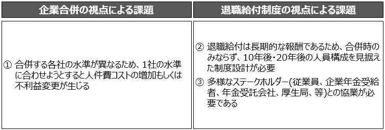 退職給付制度の統合において、大きく2つの視点で課題があります。